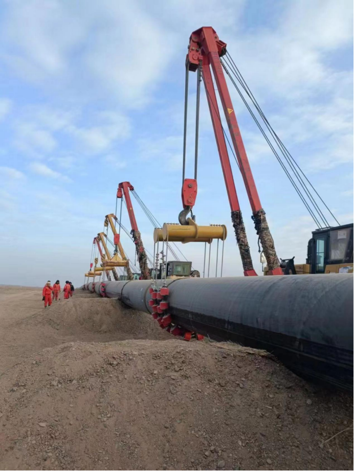 Suhigo 為新疆油建-西氣東輸四線天然氣管道工程(吐魯番-中衛(wèi)段)項(xiàng)目提供吊管機(jī)設(shè)備;滿足下溝作業(yè)要求