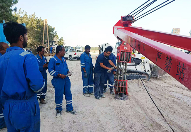 三臺吊管機成功交付客戶后,公司精心選派經驗豐富的工程師遠赴海外進行指導和培訓工作。服務人員憑借扎實的專業(yè)知識、豐富的實踐經驗向客戶詳細介紹了吊管機的操作原理、維護要點以及組裝安裝注意事項等多方面內容。在培訓過程中,工程師對客戶提出的每一個問題都給予了耐心解答,通過實際操作演示、理論講解相結合的方式,讓客戶能夠迅速掌握吊管機相關知識和技能。